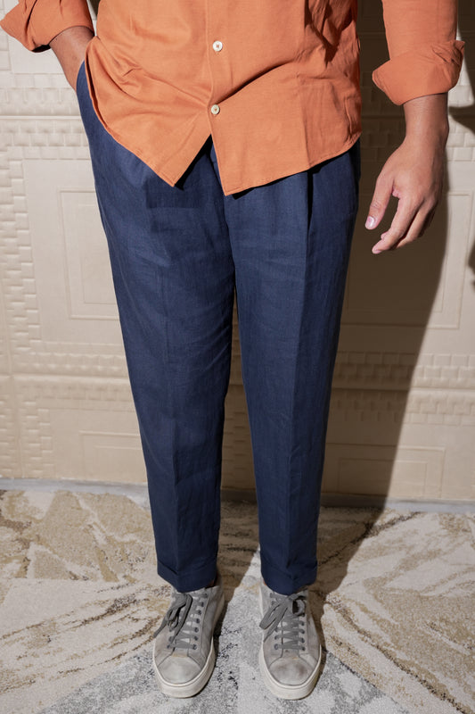 ADRIANO BULGHERONI - PANTALON LINO GRUESO NAVY BLUE